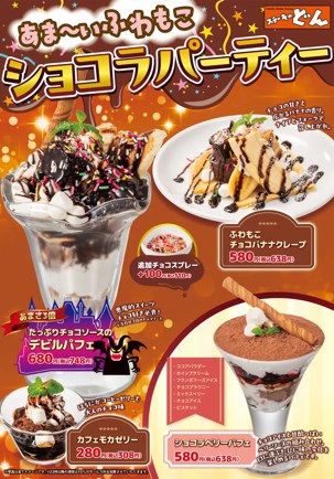 ステーキのどんでは冬の期間限定デザートフェアのふわもこショコラパーティーメニューが開催中です。