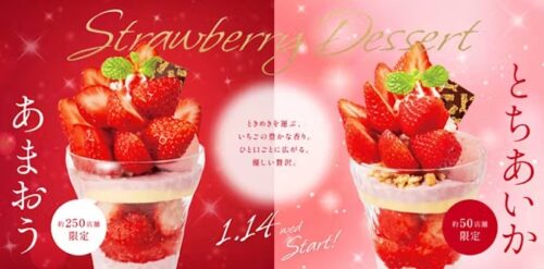 毎年恒例のいちごデザートフェアが1月から5月まで2シーズンにわけて開催されます。。
